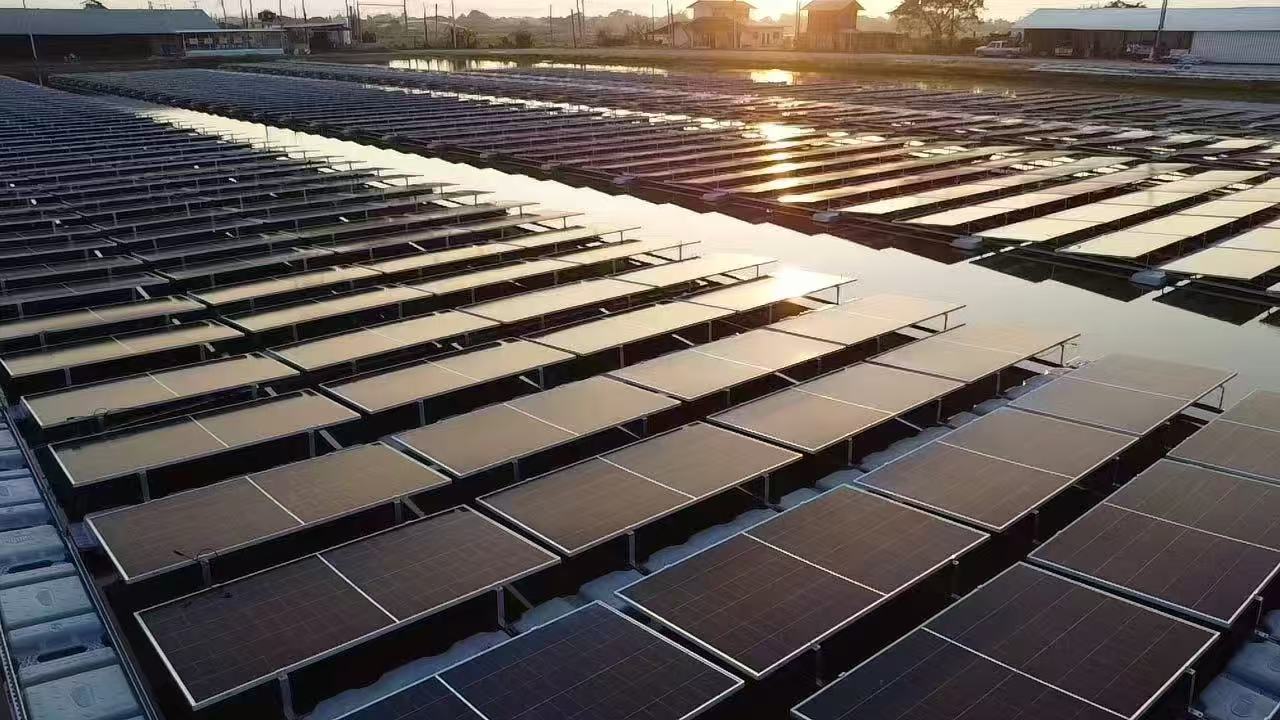 The floating PV system uses a modular floating platform and rod-connection structure, enabling efficient deployment on the water surface while maintaining structural stability and operational reliability.